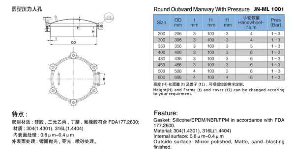 Standard: ISO, DIN, 3A, SMS, IDF, AS, BS4825...
