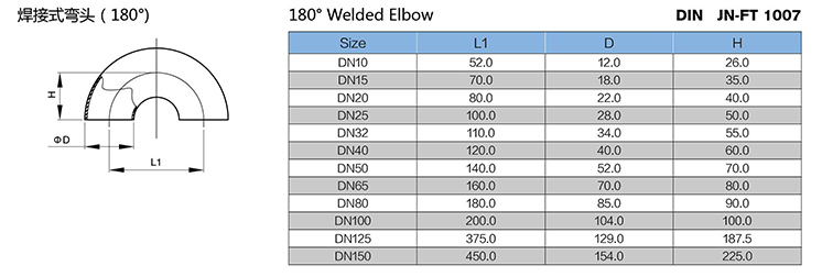 Stainless steel sanitary BW end 180D elbow