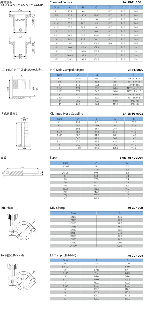 Standard: ISO, DIN, 3A, SMS, IDF, AS, BS4825...