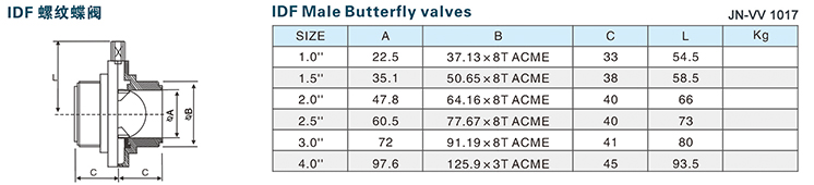 Stainless steel sanitary plastic gripper threaded butterfly valve