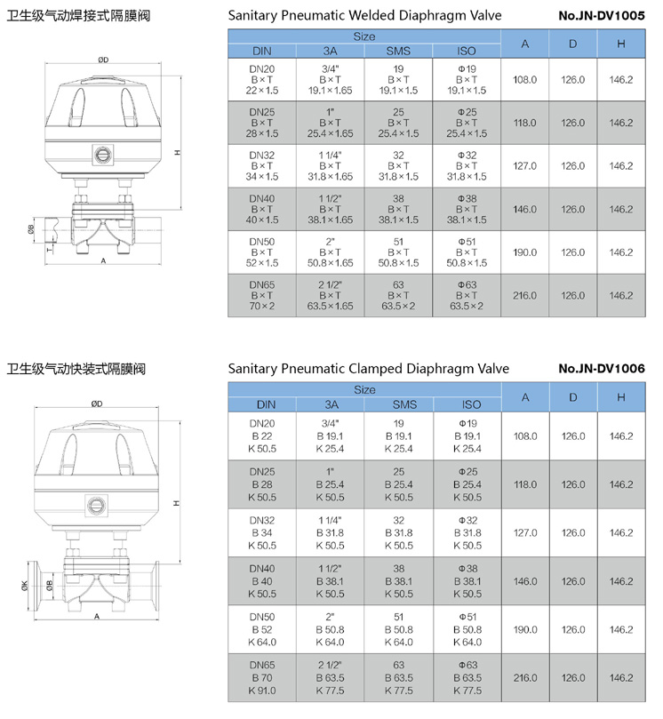 Stainless steel pneumatic sanitary Diaphragm Valve