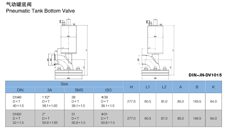 SS Hygienic High Performance Peneumatic Tank Bottom Flush Valve
