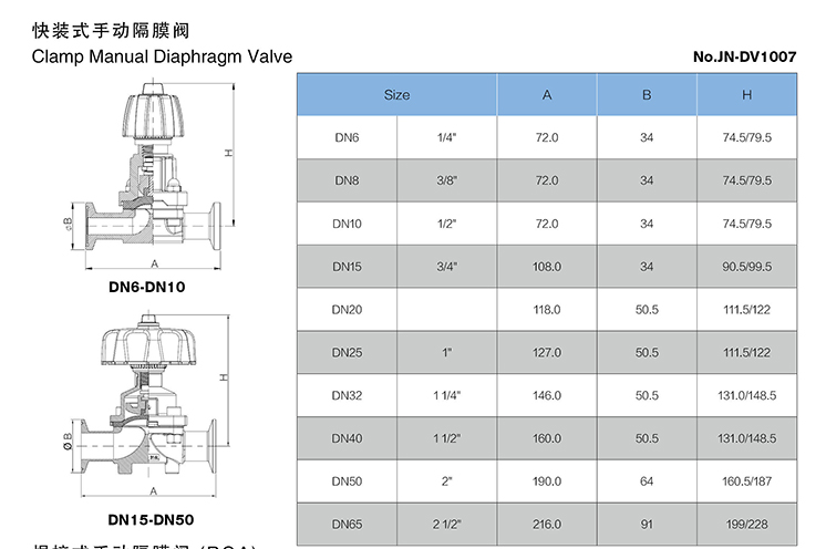 Stainless Steel Sanitary Clamped DIN Two-Way Diaphragm Valve