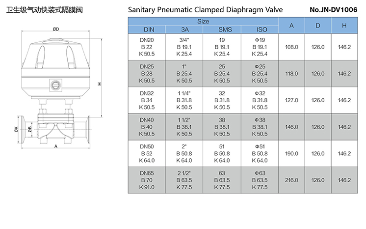 Stainless steel pneumatic sanitary Diaphragm Valve