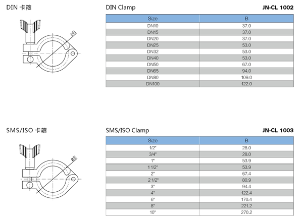 Standard: ISO, DIN, 3A, SMS, IDF, AS, BS4825...