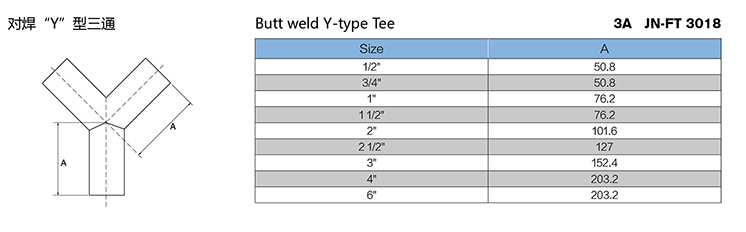 Stainless Steel Sanitary Butt Weld Y Type Tee
