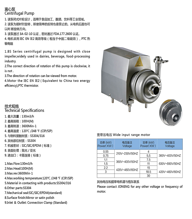 Our centrifugal pump is a sanitary pump that meets the highest sanitary requirements for use in the food-processing and pharmaceutical, dairy, milk, bear industries.
