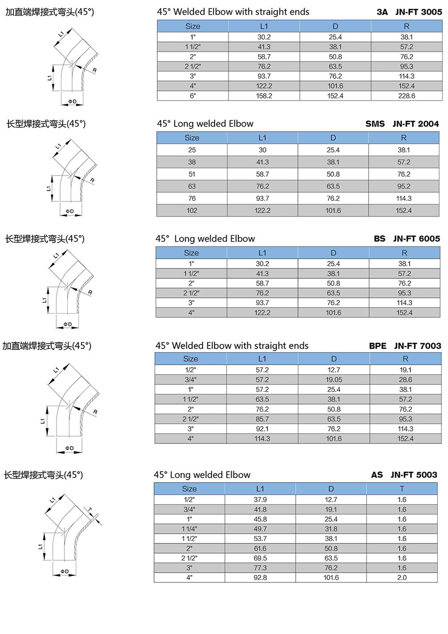 Standard: ISO, DIN, 3A, SMS, IDF, AS, BS4825...