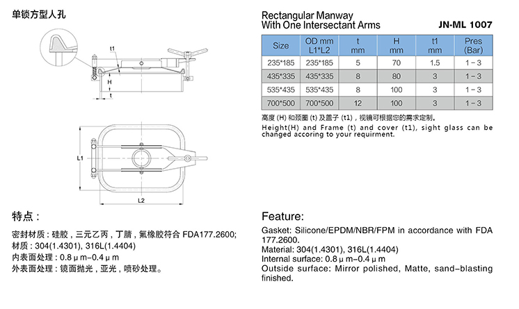 Stainless Steel Sanitary Square Outward Manway Door With EPDM Gasket