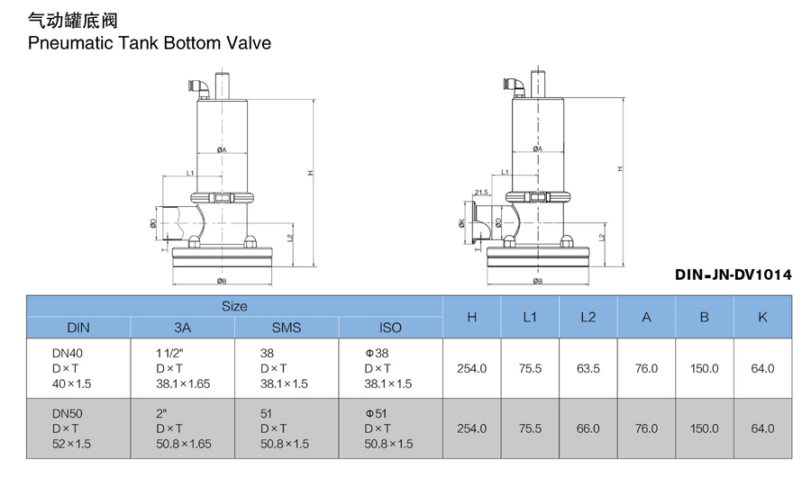 Standard: 3A, SMS, ISO, DIN,