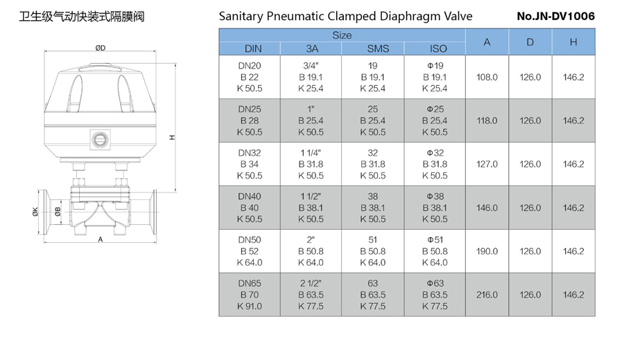 We have manual or pneumatic diaphragm valves. This type of diaphragm valve is widely used in sanitary or aseptic line.