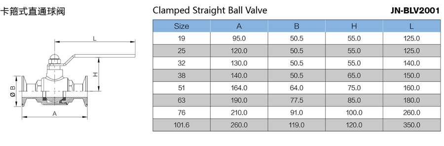 The valve body: straight type, three ways, three pieces The valve ball type: T type, L type, straight type With cleaning and drainage port Material: SS304, SS316L